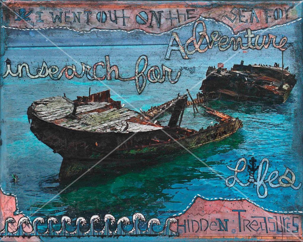 About this item: The photograph for this mixed media artwork was taken during a Marine Biology field trip, during my time studying abroad. The picture seen is at Heron Island Beach, Australia. I used an original quote reading "I went out on the sea for adventure, in search for life's hidden treasures" to capture the spirit of the island and its beauty.